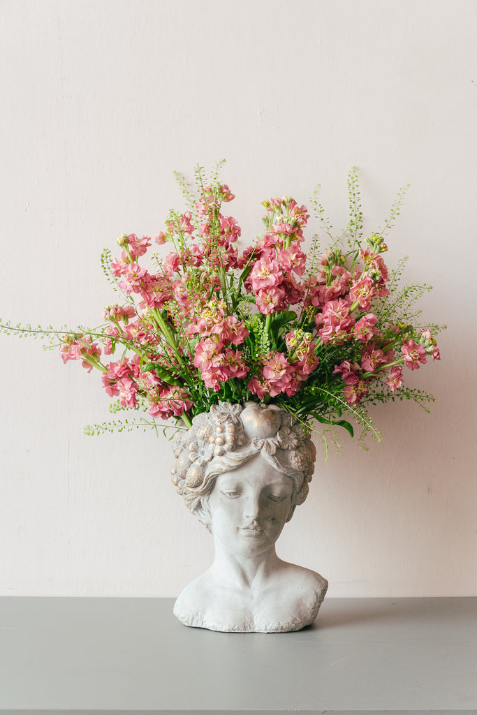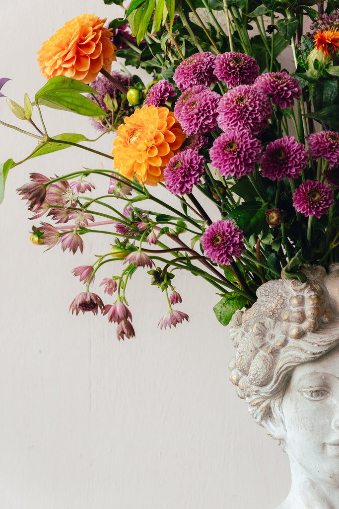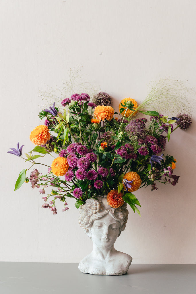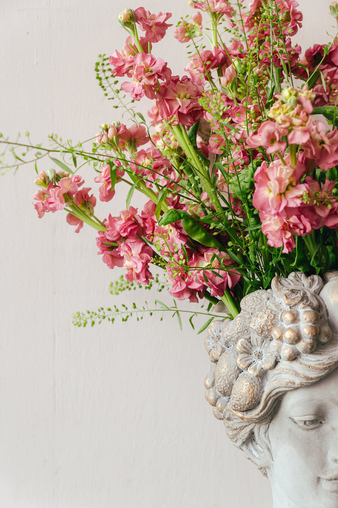 Cerámica de rayas burdeos con rosas y flores silvestres