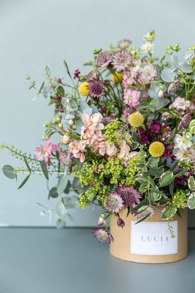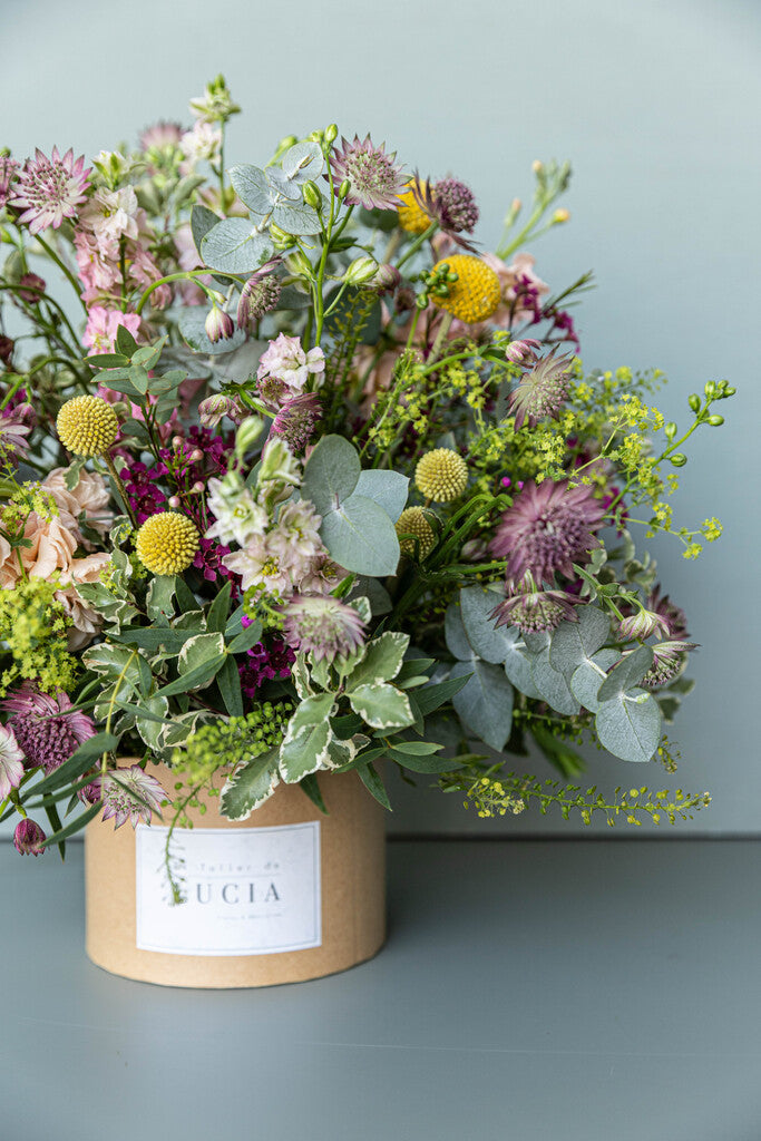 Caja kraft con flores silvestres en tonos pastel
