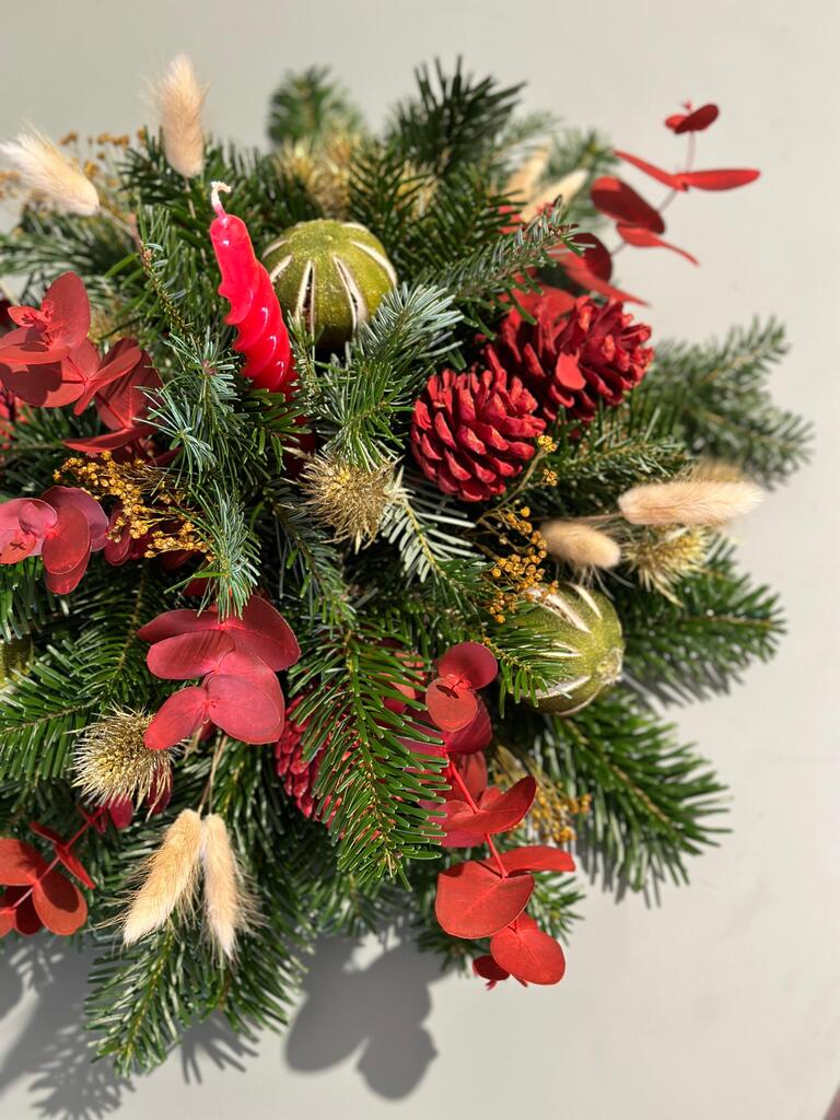 Incluye vela de bujía roja de 25 cm de altura. El centro tiene un diámetro aproximado de 20-25 cm.