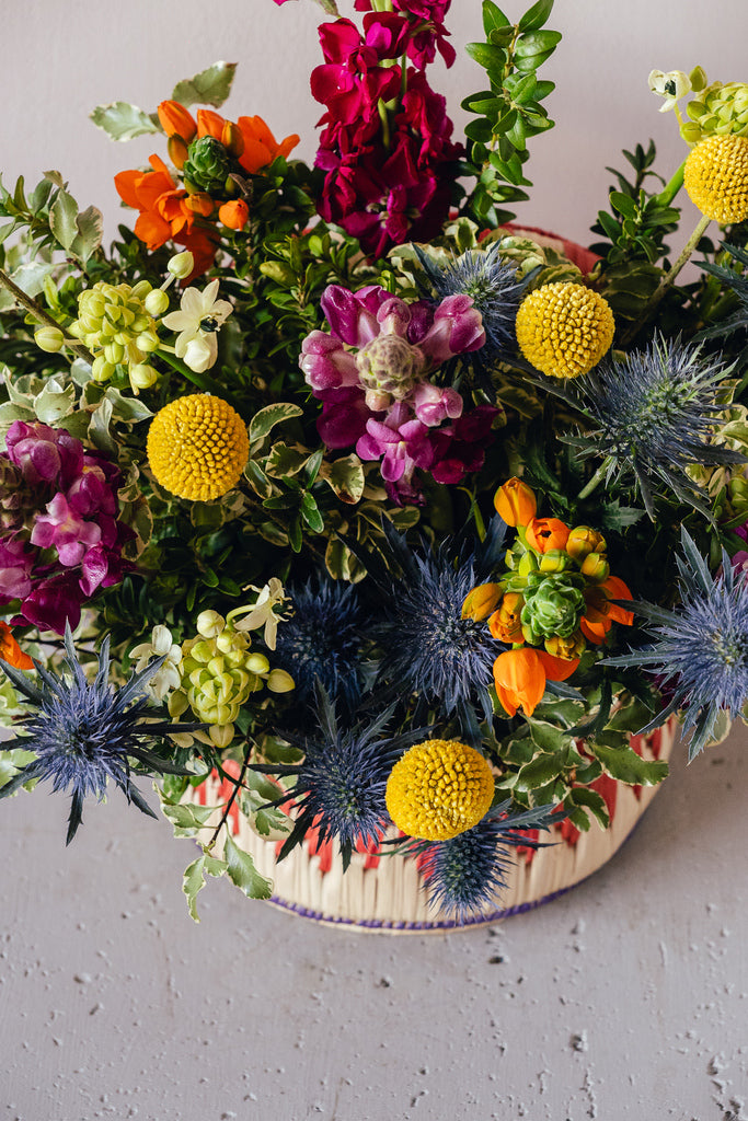 • El producto que has seleccionado puede estar sujeto a alguna variación en cuanto a la selección de flores y bases, en función de la disponibilidad y estacionalidad de las mismas. Intentaremos respetar al máximo el tamaño, tonalidades y formato que has elegido. En el caso de que el taller se vea en la obligación de sustituir alguna de las variedades de flor que componen el arreglo floral, seleccionaremos flores de igual valor o superior a las que aparecen en la imagen. Esto implica que algunas flores puedan variar de asecto respecto a las que aparecen en la imagen.
