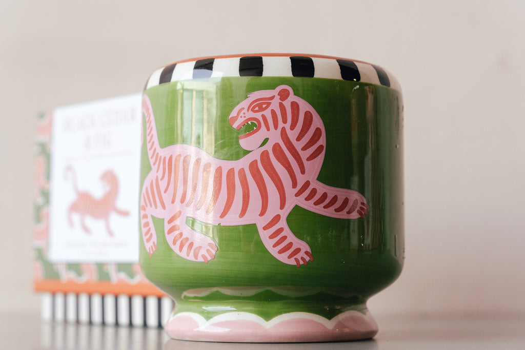 Esta vela de cera de soja y aceites aromáticos huele a pomelo, pimienta rosa y pachulí. Viene presentación en un recipiente de cerámica pintado a mano.